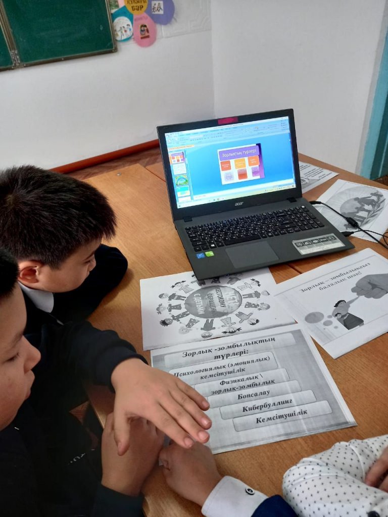 Балаларға зорлық-зомбылық туралы мағлұмат беру, адамның жаны мен тәніне үлкен зардап әкелетін соққы екенін түсіндіру және зорлыққа қарсы біздің елімізде заң бар екенін айту, өз жүрген орталарында мейірімді болуға, бұзақылық істерге бармауға, адами...
